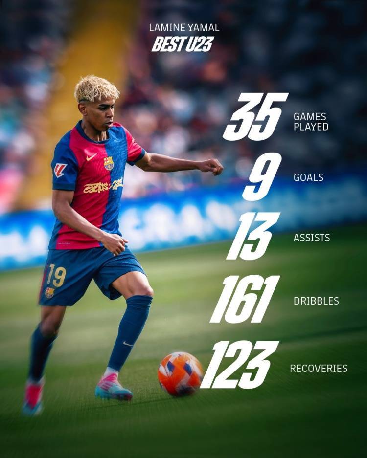 直播吧6月11日讯 毫无疑问,亚马尔是当今世界最闪亮的新星。德转市场近日更新了世界足坛身价榜,其中亚马尔更是以2亿欧身价登顶。巴萨社媒晒出亚马尔本赛季西甲个人数据海报,并配文:当下与未来的璀璨巨星💎亚马尔海报本赛季西甲个人数据:最出色的年轻球员出场:35次进球:9个助攻:13次过...